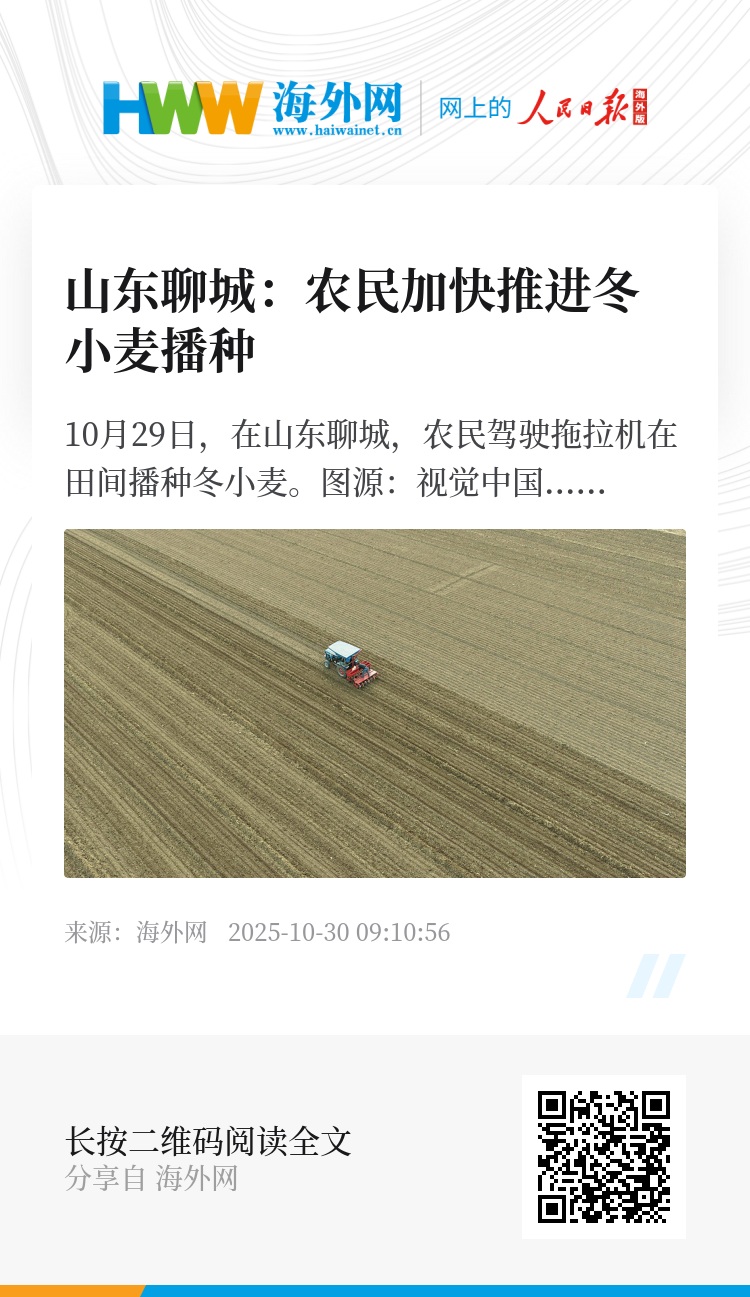 32904727,.山东聊城:农民加快推进冬小麦播种,.2025-10-30 09:25:56,.204555,.陈菲扬、姚凯红