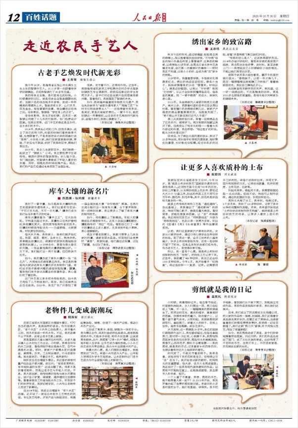 如今,我的剪纸走进了课堂,孩子们好奇地摸着那些图案,问这问那;我们的作品也走出了国门,成了文化交流的使者。这份传承了千百年的手艺,在我们手上,不仅没有衰落,反而焕发出新的生机。(本报记者 贾丰丰采访整理)