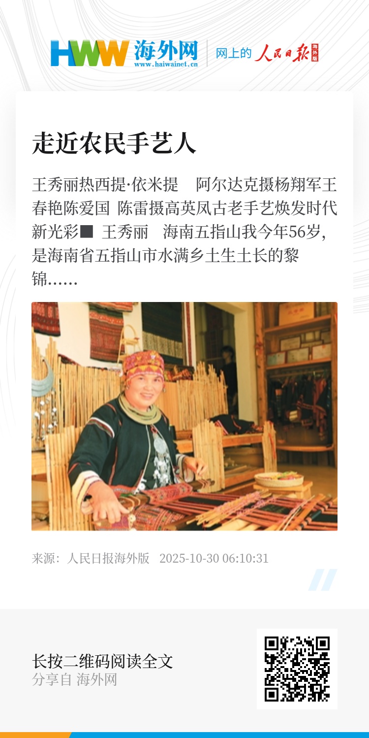如今,政府越来越重视非物质文化遗产,我也先后被评为“省级非遗传承人”“南海工匠”“乡村文化和旅游带头人”……这些荣誉对我来说,是肯定,更是沉甸甸的责任。一辈子不长,能把织锦这一件事做好,让古老的手艺焕发时代新光彩、造福乡亲们,我就心满意足了。(本报记者 孙海天采访整理)