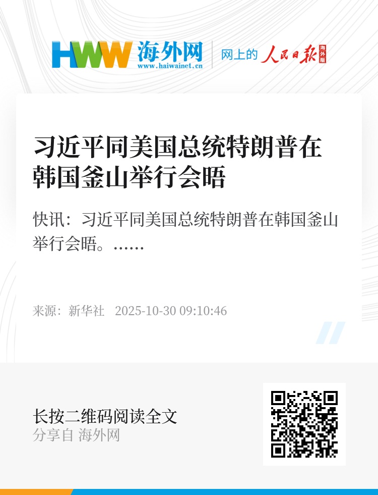 新华社快讯:习近平同美国总统特朗普在韩国釜山举行会晤。