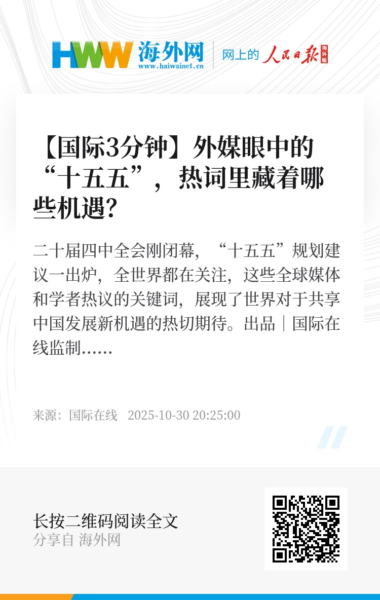二十届四中全会刚闭幕,“十五五”规划建议一出炉,全世界都在关注,这些全球媒体和学者热议的关键词,展现了世界对于共享中国发展新机遇的热切期待。