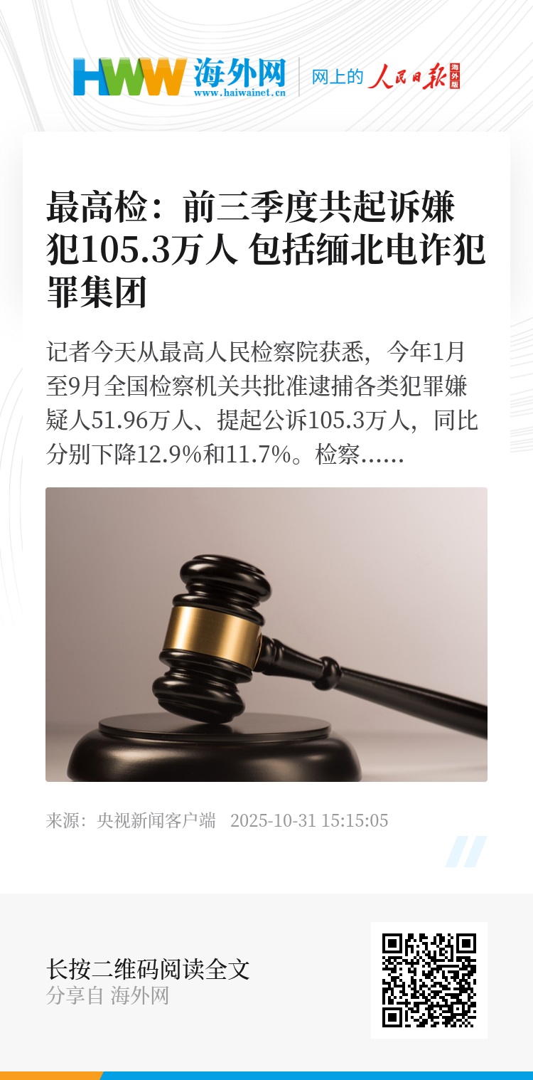 深入推进网络依法治理。制定促进网络治理专门方案,起诉利用网络实施的犯罪13.6万人,其中电信网络诈骗犯罪4.9万人。协同推进打击涉缅北等电诈专项行动,指导地方检察机关对缅北白家、刘家、魏家犯罪集团案依法提起公诉。依法惩治网络暴力、“网络水军”造谣引流、舆情敲诈等违法犯罪,用法治力量维护网络清朗。起诉利用网络实施的侵犯公民个人信息犯罪1451人,办理公益诉讼3217件,保护个人隐私和信息安全。