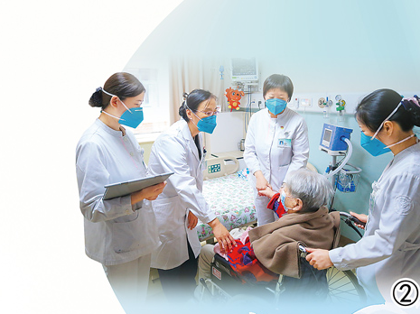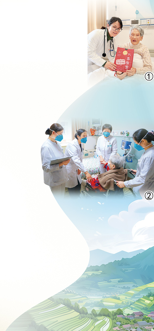 图①:在安吉县中医医院安宁疗护病房,医护人员正在陪伴患者。