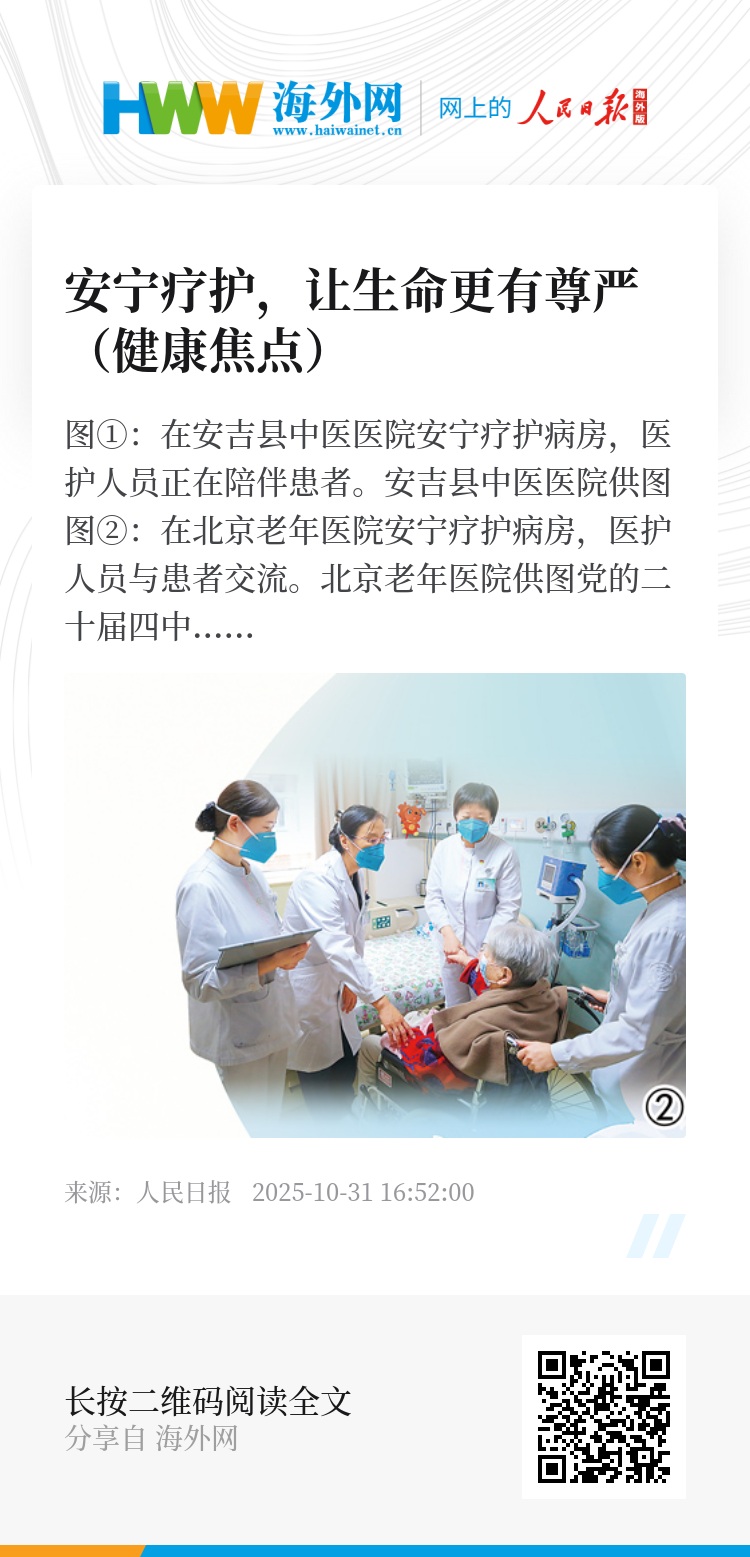 专家建议,推动在高等医学教育中设立安宁疗护相关专业或课程,启动安宁疗护医生培训;加强安宁疗护继续教育,建立分层、分类的职业技能培训与认证体系;设立专项津贴与职业保护政策,提升岗位吸引力,稳定人才队伍。(记者 杨彦帆 游 仪 陆凡冰)
