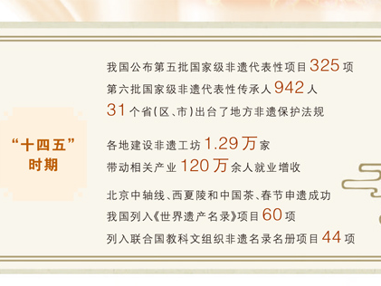 非遗的生命力在于传承和创新。“十四五”时期,我国非遗保护的机制更加完善,实践更加生动,传承队伍更加壮大,非遗更加见人见物见生活、可知可感可体验,展示了助力经济社会发展的广阔前景。