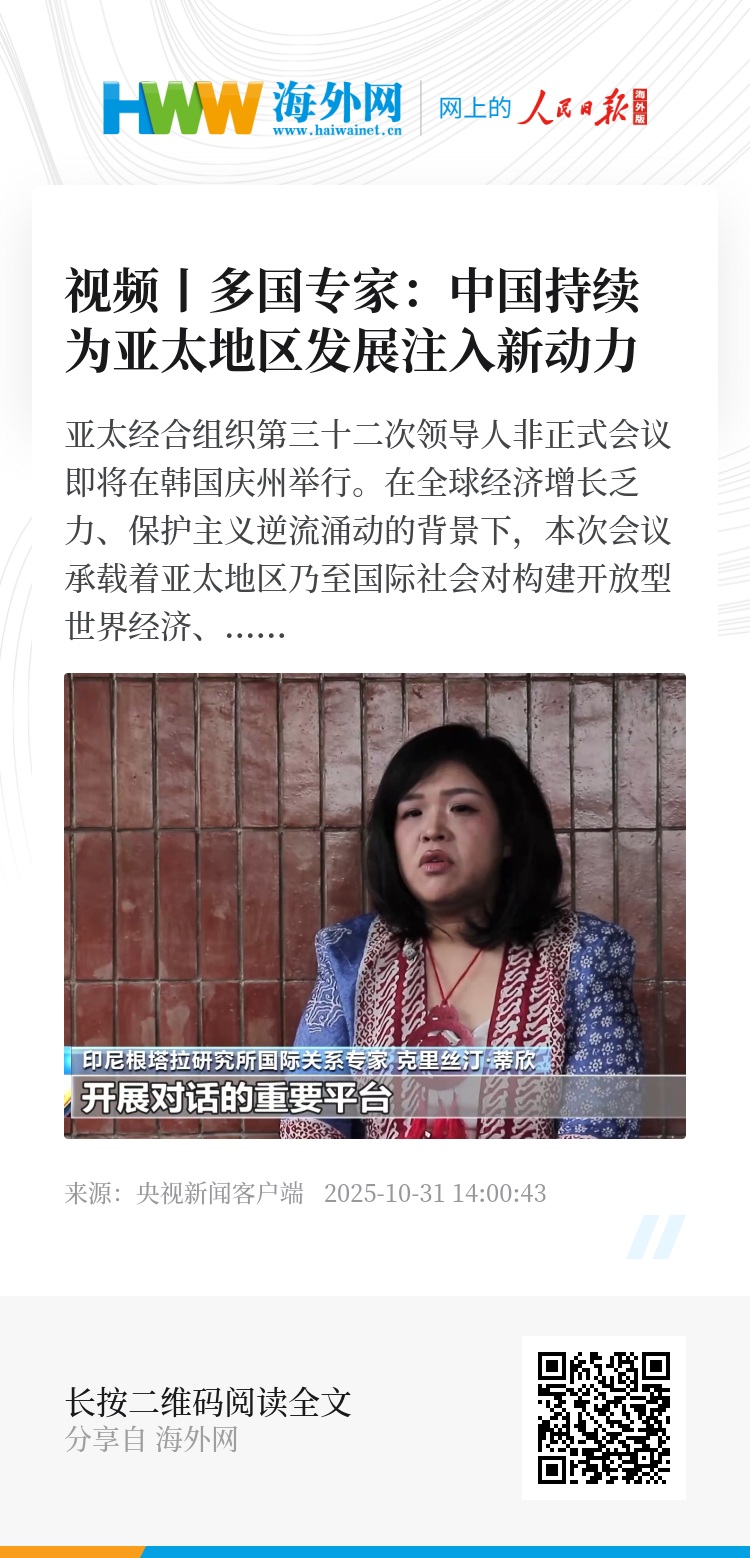 亚太经合组织第三十二次领导人非正式会议即将在韩国庆州举行。在全球经济增长乏力、保护主义逆流涌动的背景下,本次会议承载着亚太地区乃至国际社会对构建开放型世界经济、实现共同繁荣的热切期待。多国专家表示,中国始终以开放精神推动区域一体化与互联互通,持续为亚太地区这一全球经济最具活力板块和主要增长引擎注入新动力。