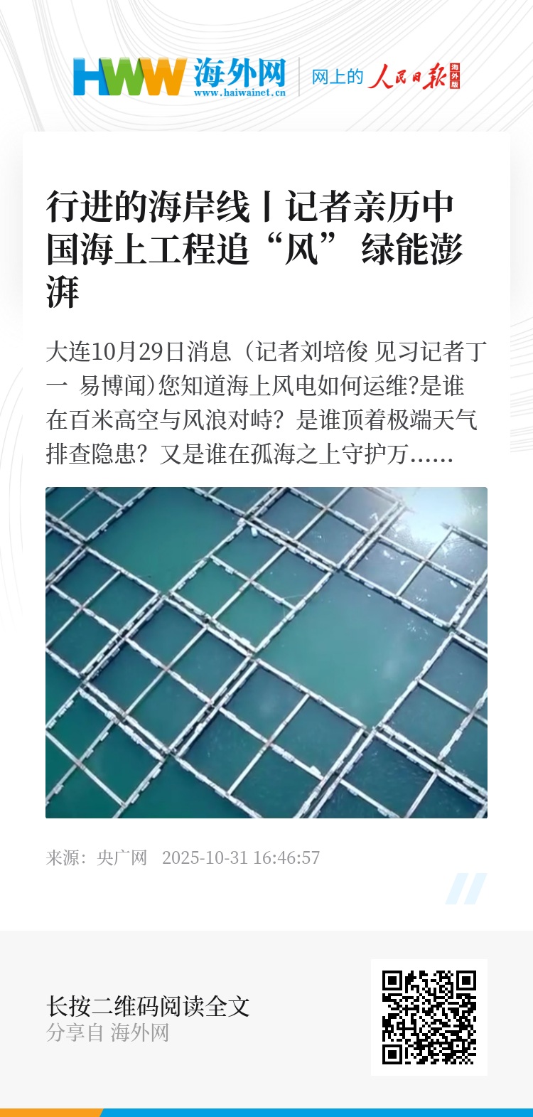 随着采访接近尾声,记者行走在这座城市的海岸线上,巨大的白色风机叶片在海天相接处缓缓转动,它们不仅转出了绿色电力,更转出了一座城市向新质生产力转型的生动样本。