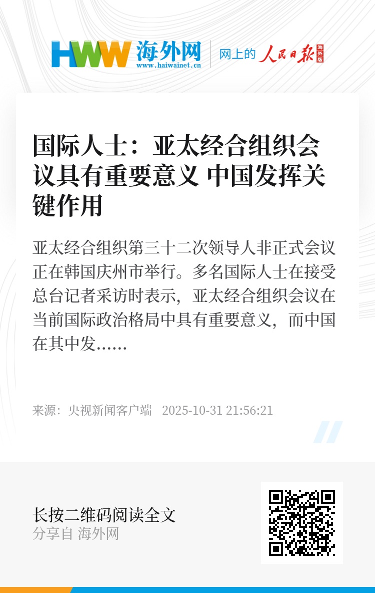 国际人士还表示,他们热切期待此次亚太经合组织第三十二次领导人非正式会议能够在促进互联互通、维护多边主义等方面,取得更多积极成果。