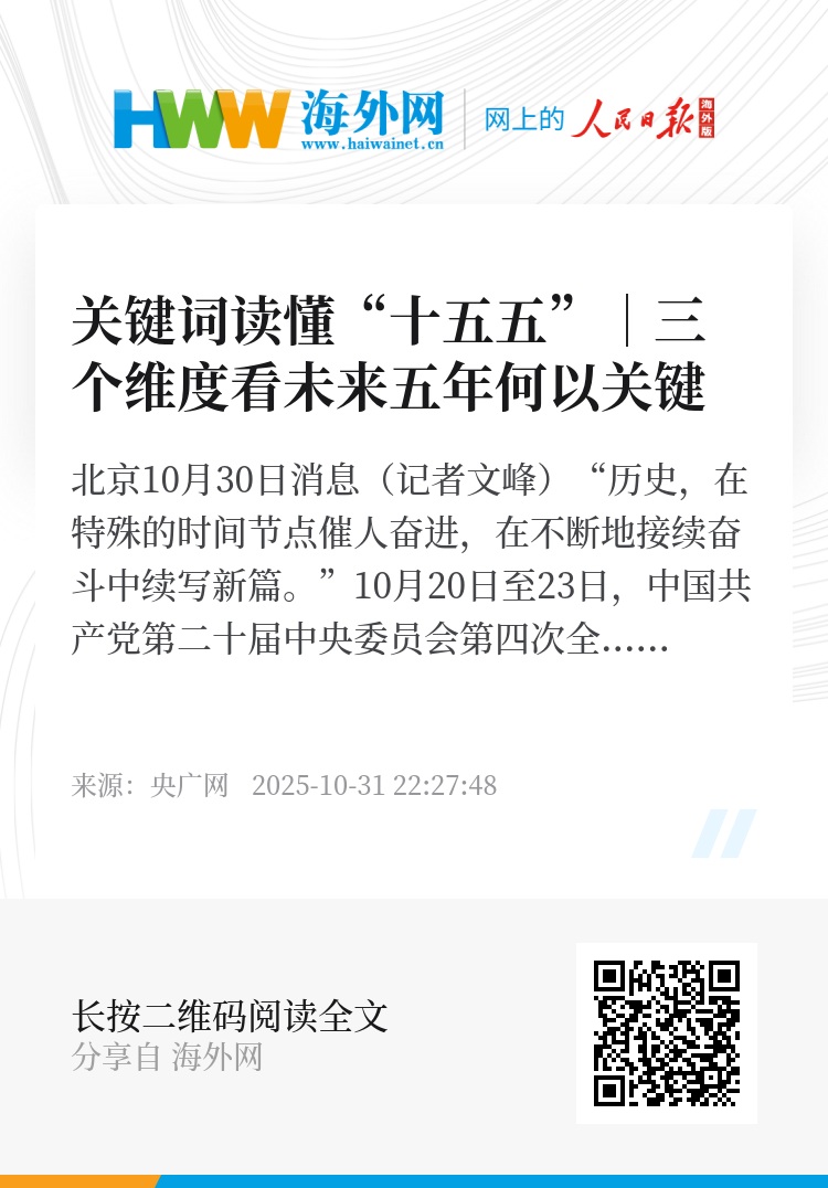 央广网北京10月30日消息(记者文峰)“历史,在特殊的时间节点催人奋进,在不断地接续奋斗中续写新篇。”10月20日至23日,中国共产党第二十届中央委员会第四次全体会议在北京召开,审议通过《中共中央关于制定国民经济和社会发展第十五个五年规划的建议》(以下简称《建议》)。全会公报明确指出:“十五五”时期是基本实现社会主义现代化夯实基础、全面发力的关键时期,在基本实现社会主义现代化进程中具有承前启后的重要地位。”