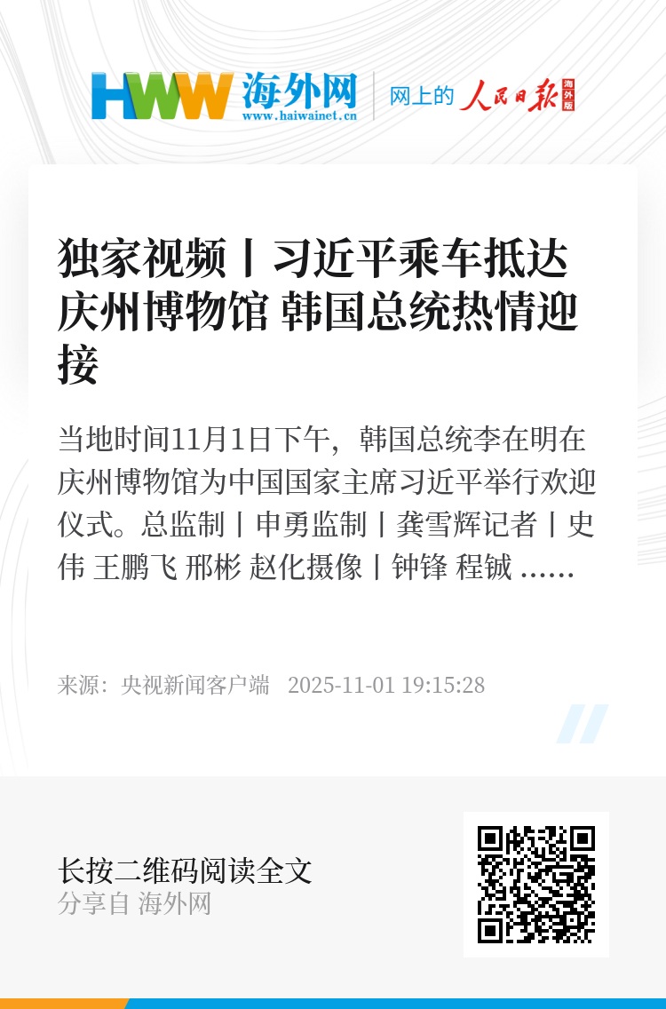 独家视频丨习近平乘车抵达庆州博物馆 韩国总统热情迎接