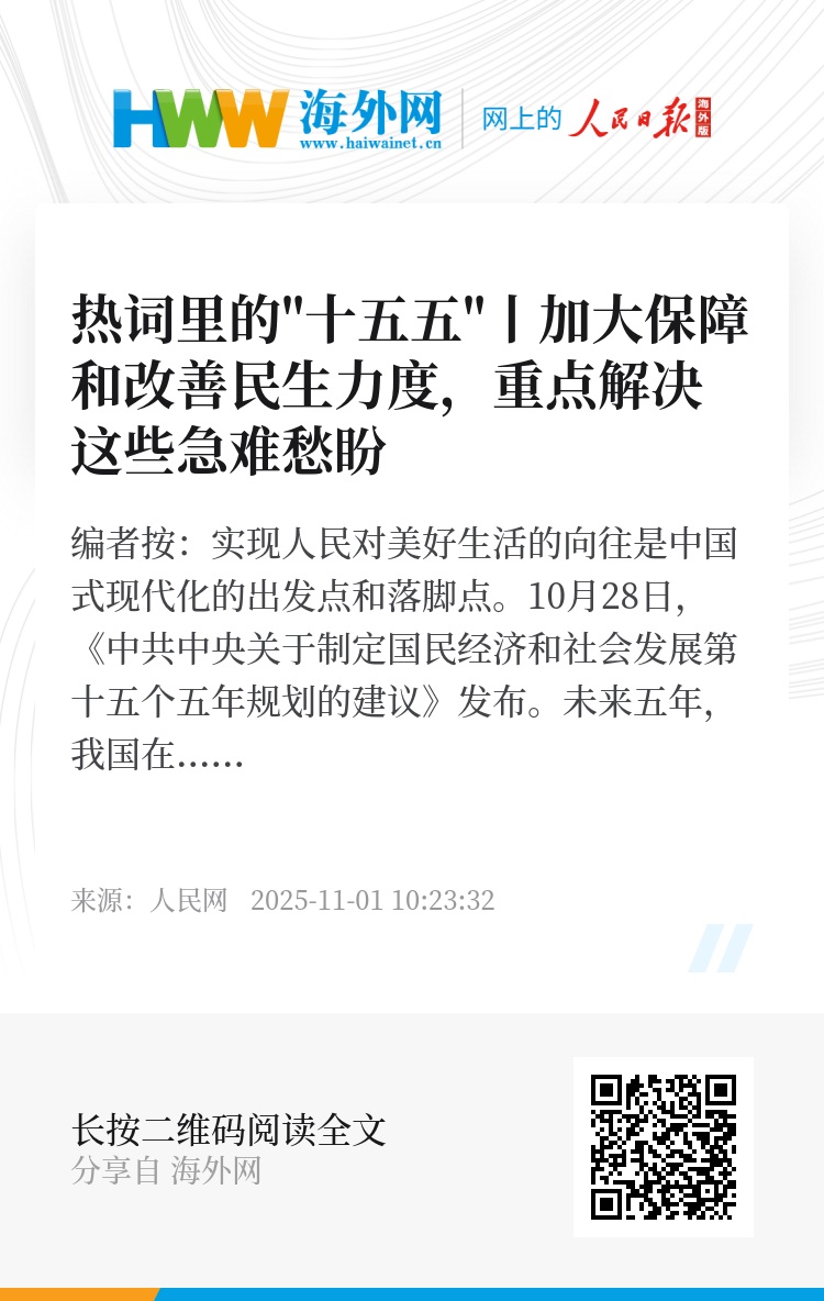 编者按:实现人民对美好生活的向往是中国式现代化的出发点和落脚点。10月28日,《中共中央关于制定国民经济和社会发展第十五个五年规划的建议》发布。未来五年,我国在加大保障和改善民生力度方面,将着力解决哪些人民群众的急难愁盼问题?一起来看。