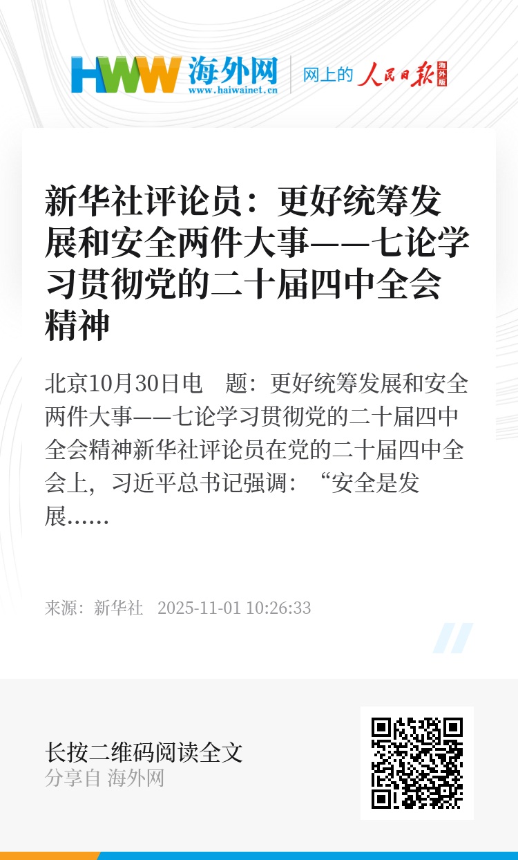 新华社北京10月30日电 题:更好统筹发展和安全两件大事——七论学习贯彻党的二十届四中全会精神