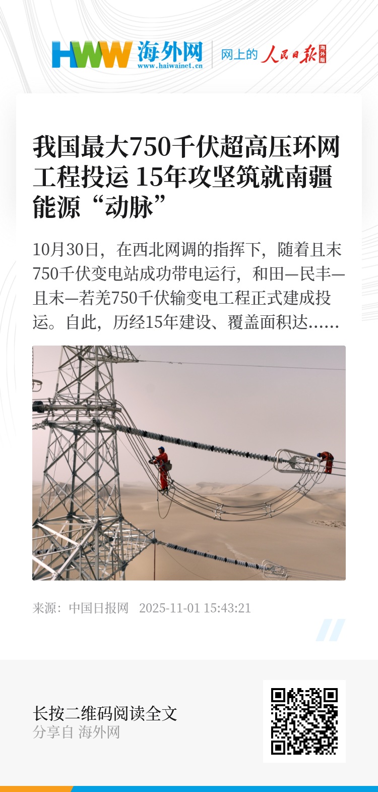 新疆环塔里木盆地750千伏输变电工程的全线投运,具有重大的经济和社会效益。据测算,工程投运后将带动周边产业投资超过283亿元,直接与间接提供就业岗位8000余个,对推动发展成果惠及民生、凝聚人心具有重大意义;在电力保障层面,既打通了疆内供电“最后一公里”,又串联起外送通道“主动脉”,为南疆沙漠、戈壁、荒漠地区大型风电光伏基地建设提供支撑,满足区域中远期新增负荷用电需求;更将有力支撑新疆第三条交流、第四条直流外送通道建设,推进新疆与青海大电网互联互通,大幅提升新疆绿色能源外送能力,加速新疆能源优势向经济优势转换,为新疆社会稳定和长治久安、服务全国电力保供大局作出重要贡献。(中国日报记者毛卫华|张杨、 滚艳 、王伽、齐朝阳)