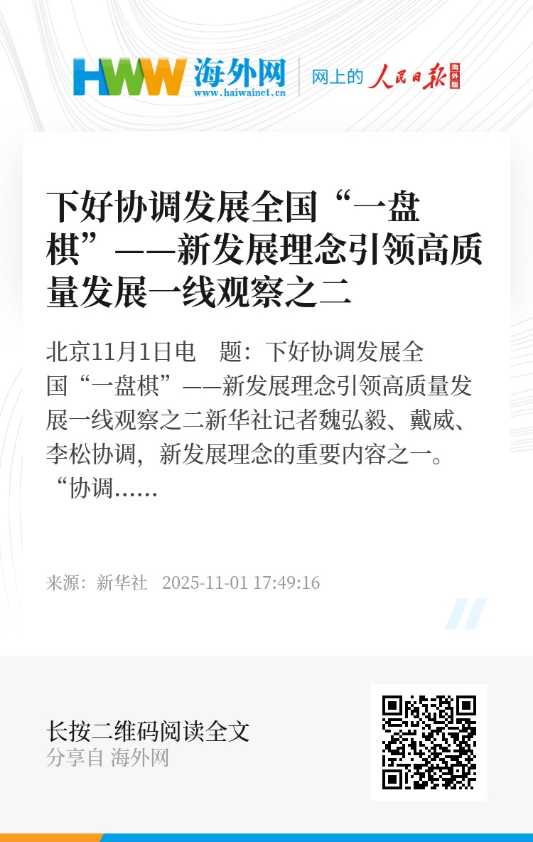 新华社北京11月1日电 题:下好协调发展全国“一盘棋”——新发展理念引领高质量发展一线观察之二