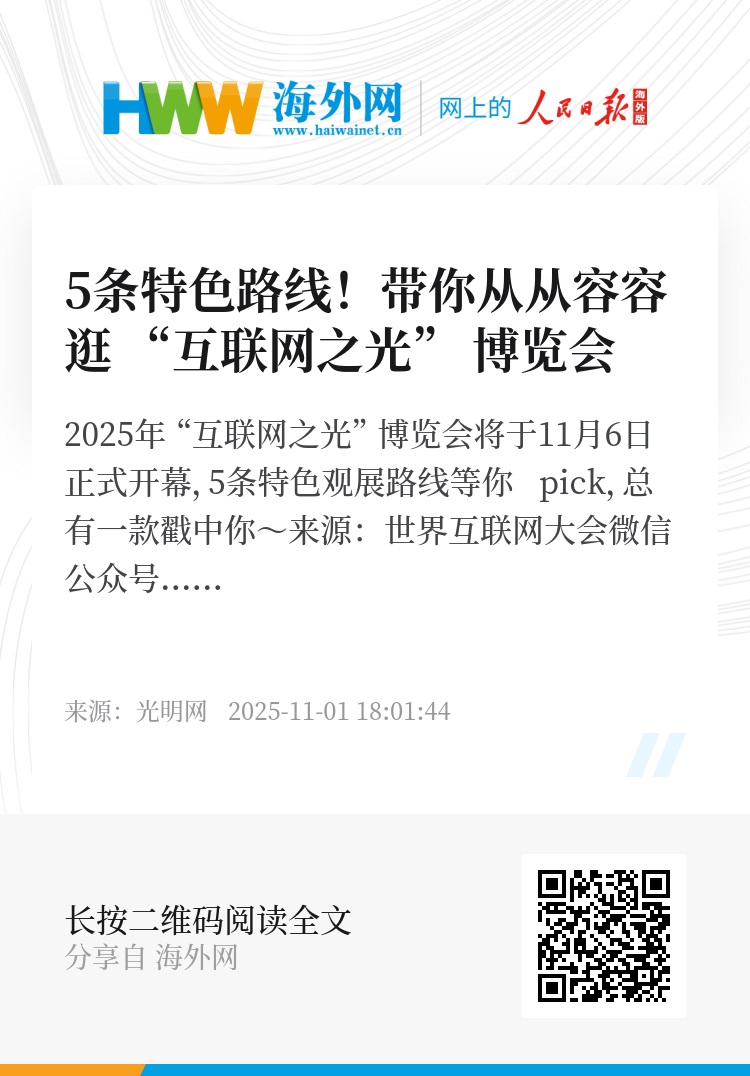 2025年 “互联网之光” 博览会将于11月6日正式开幕,5条特色观展路线等你 pick,总有一款戳中你~