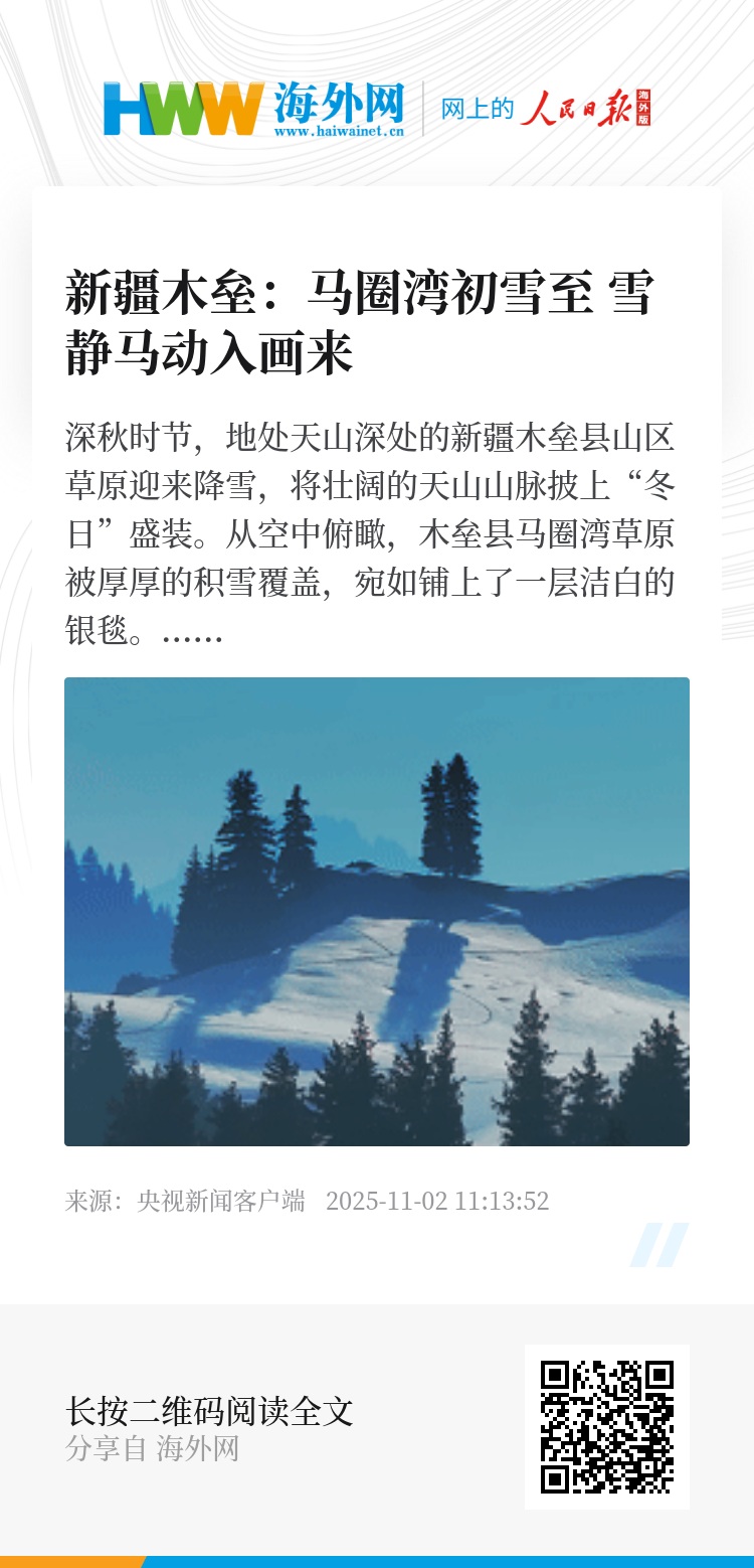 深秋时节,地处天山深处的新疆木垒县山区草原迎来降雪,将壮阔的天山山脉披上“冬日”盛装。