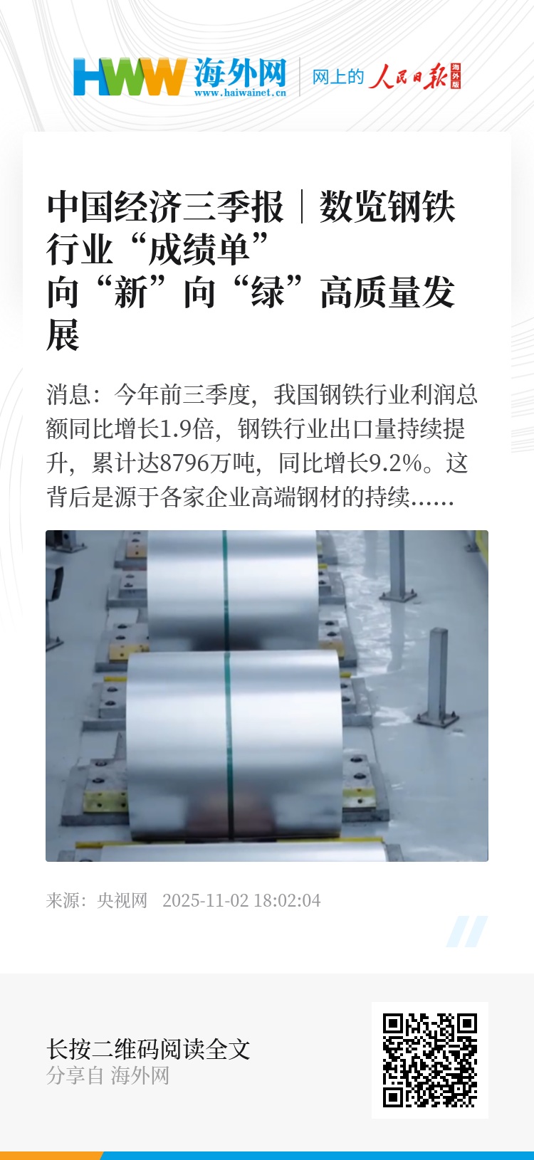 中国经济三季报:钢铁行业绿色转型取得明显成效