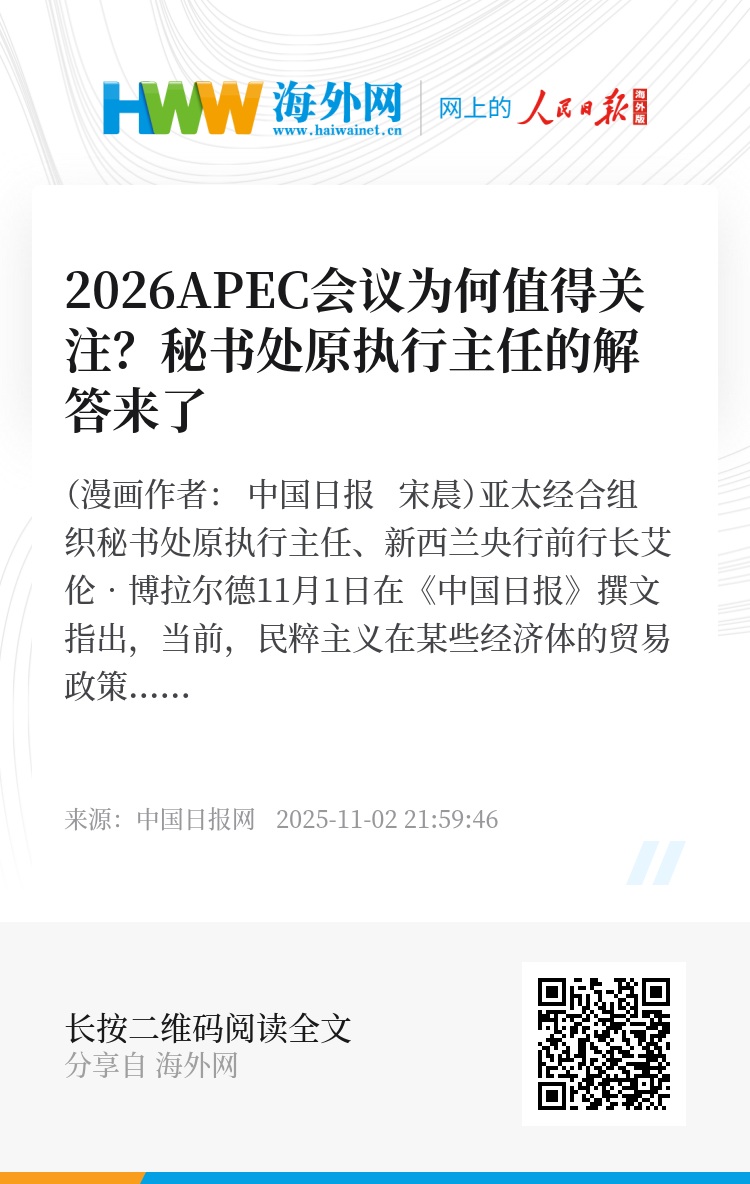 文章表示,过去美国曾主导多边调整,如今却不太可能。而市场一旦发生崩溃,将带来灾难性后果。正因如此,中国举办2026年亚太经合组织会议格外重要。(王辉 朱萍 姚英)