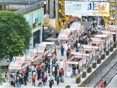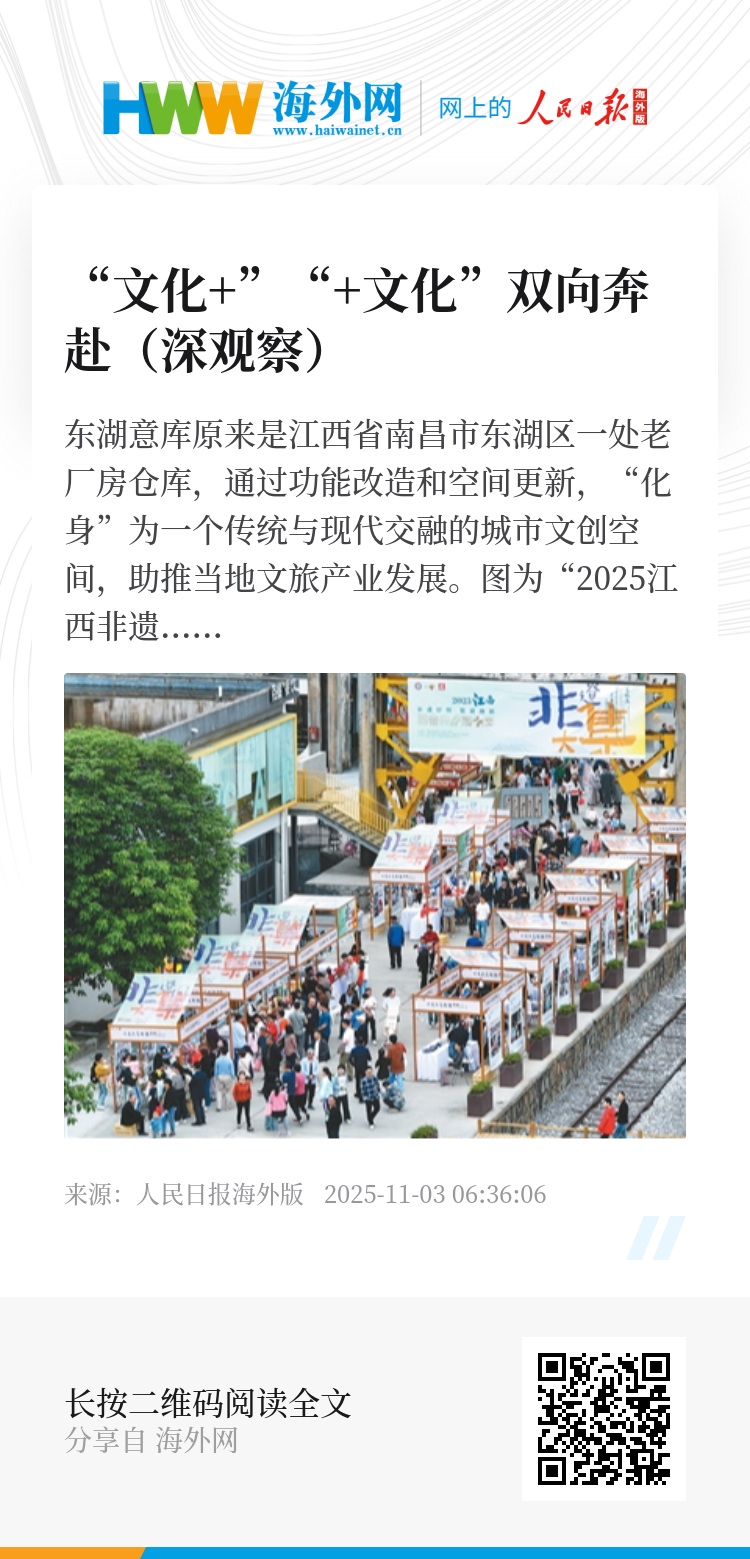 东湖意库原来是江西省南昌市东湖区一处老厂房仓库,通过功能改造和空间更新,“化身”为一个传统与现代交融的城市文创空间,助推当地文旅产业发展。图为“2025江西非遗大集”现场人头攒动。李 劼摄(人民视觉)
