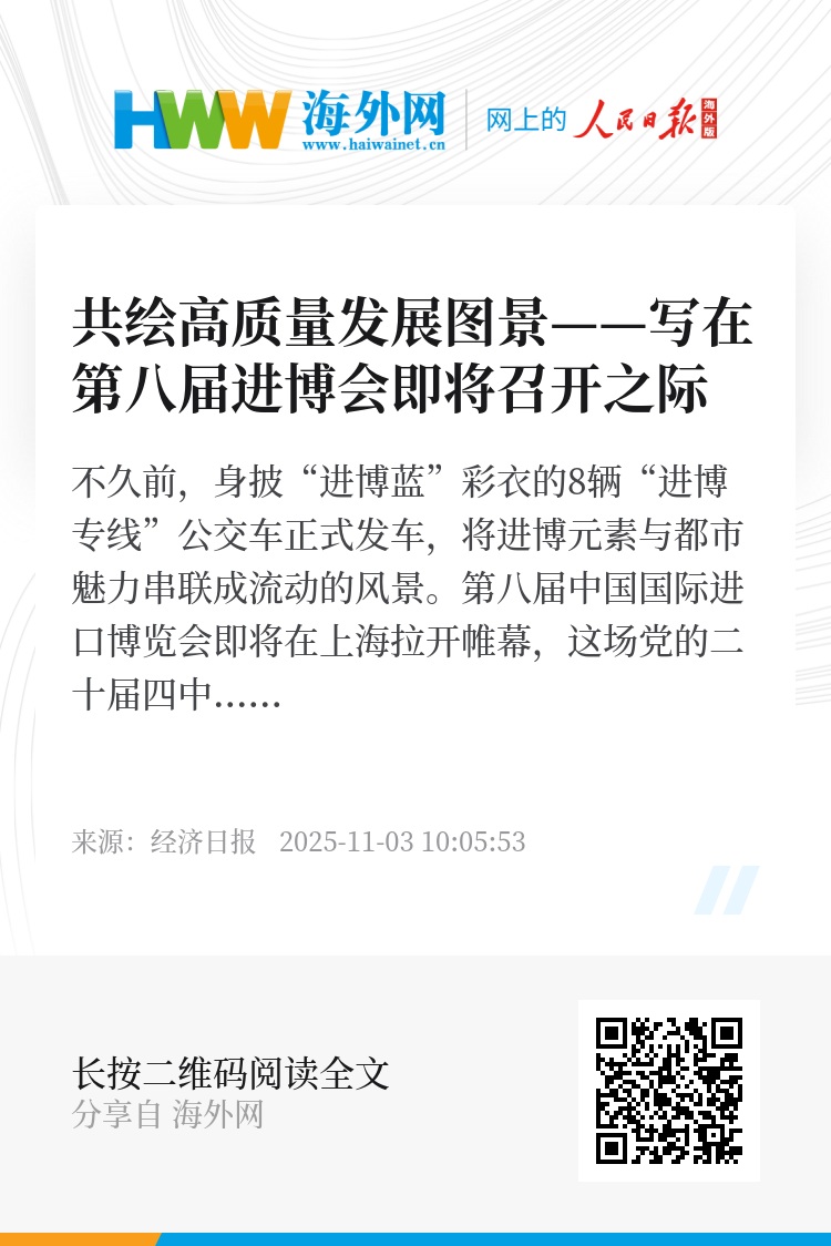 不久前,身披“进博蓝”彩衣的8辆“进博专线”公交车正式发车,将进博元素与都市魅力串联成流动的风景。第八届中国国际进口博览会即将在上海拉开帷幕,这场党的二十届四中全会后举办的首场重要经济外交活动,见证着上海与进博会的第八次双向奔赴——上海以优质服务保障护航盛会成功举办,进博会则为上海高水平开放注入不竭动能。