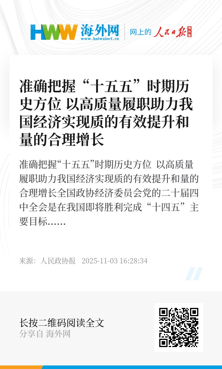 准确把握“十五五”时期历史方位 以高质量履职助力我国经济实现质的有效提升和量的合理增长