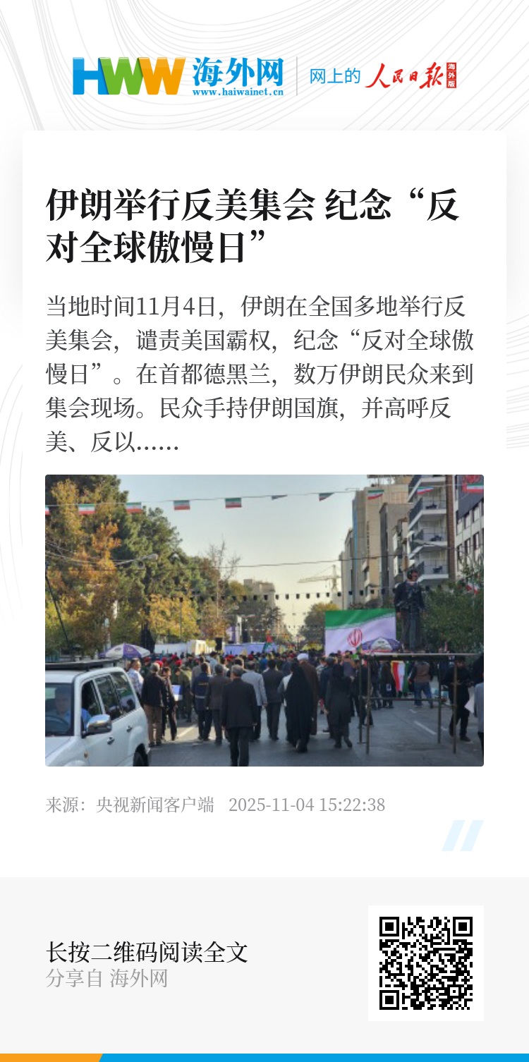 当地时间11月4日,伊朗在全国多地举行反美集会,谴责美国霸权,纪念“反对全球傲慢日”。