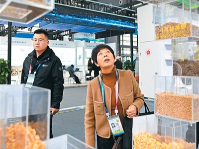 第32届中国杨凌农业高新科技成果博览会日前在陕西举行。图为观众在会上参观了解作物种子。新华社记者 李一博摄