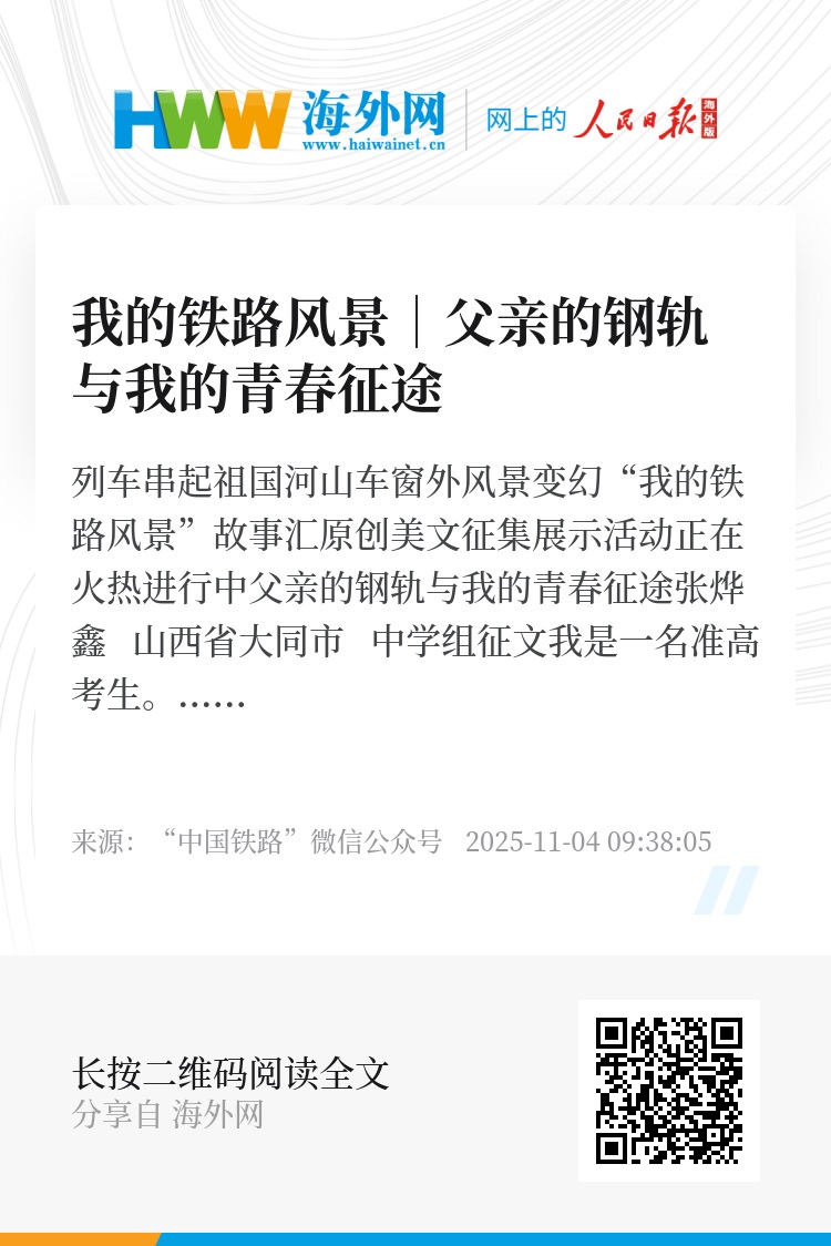 “读万卷书”让我在文字中领略世界的精彩,“行万里路”让我在旅途中感受祖国的魅力。铁路,不仅是连接城市与城市的纽带,更是连接知识与实践、过去与未来的桥梁。我的铁路风景,有爸爸的坚守与付出,有时代的发展与进步,更是我自己的青春征途。我相信,在无数铁路人的共同努力下,我国的铁路事业必将迎来更加辉煌灿烂的明天,而我的铁路梦想,也将在这片广阔的天地中愈加茁壮成长。