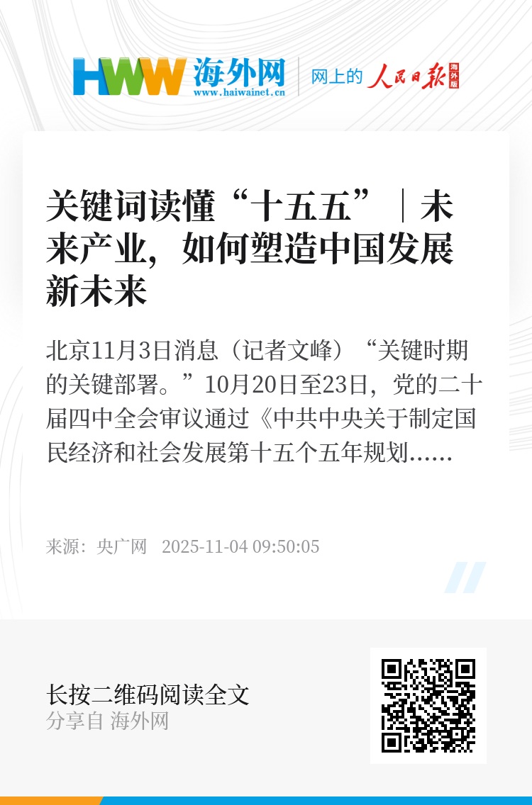 央广网北京11月3日消息(记者文峰)“关键时期的关键部署。”10月20日至23日,党的二十届四中全会审议通过《中共中央关于制定国民经济和社会发展第十五个五年规划的建议》(以下简称《建议》)。《建议》明确提出,要探索多元技术路线与商业模式,推动量子科技、生物制造、氢能和核聚变能、脑机接口、具身智能、第六代移动通信等成为新的经济增长点。