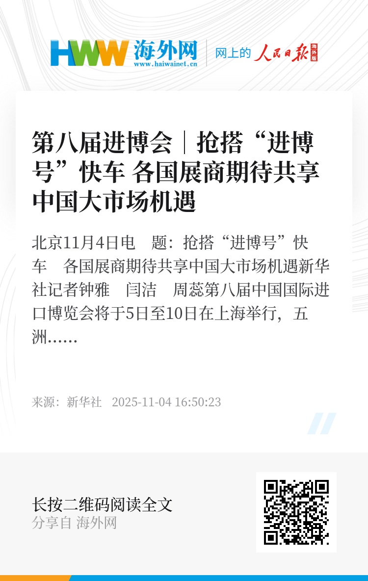 新华社北京11月4日电 题:抢搭“进博号”快车 各国展商期待共享中国大市场机遇