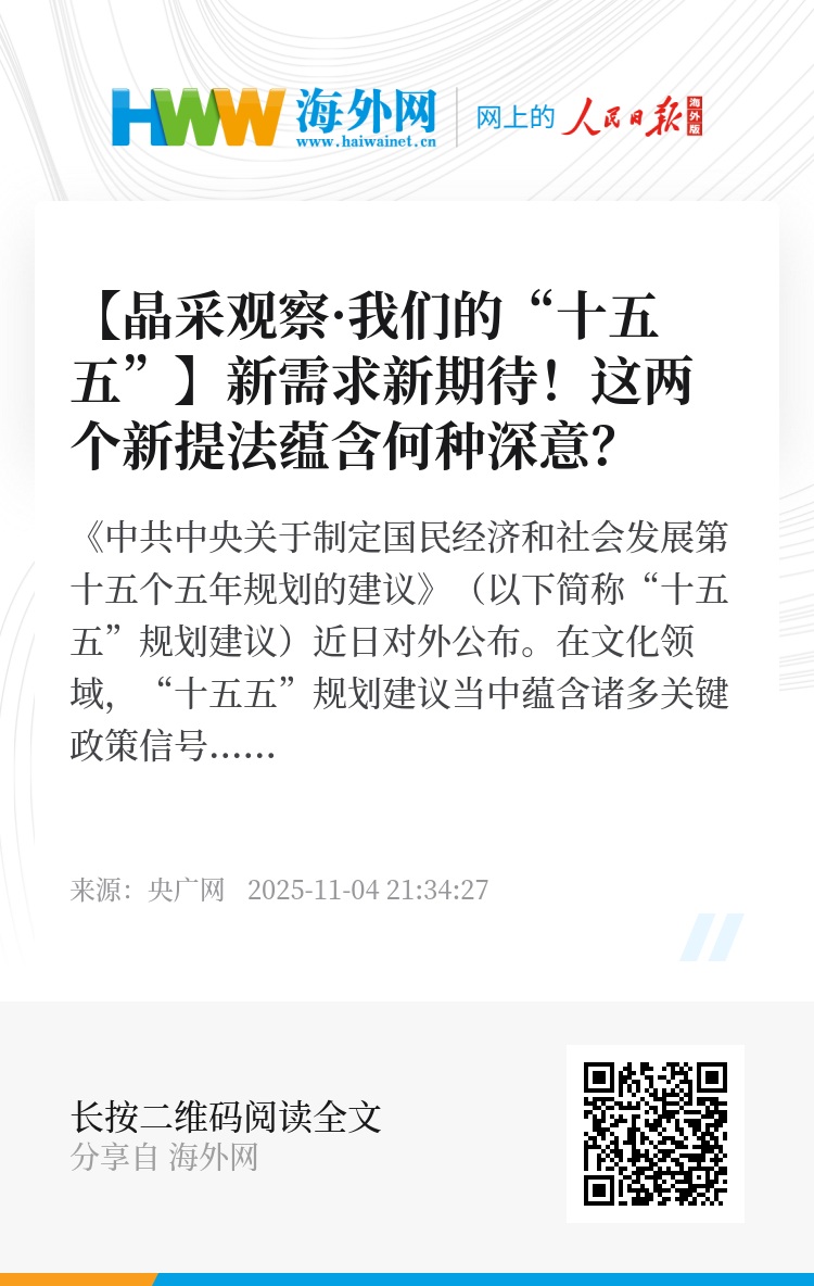 《中共中央关于制定国民经济和社会发展第十五个五年规划的建议》(以下简称“十五五”规划建议)近日对外公布。在文化领域,“十五五”规划建议当中蕴含诸多关键政策信号。
