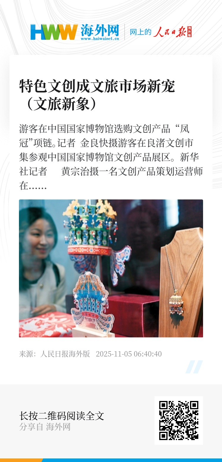 从博物馆到景区,从城市礼物兴起到年轻创客聚集,特色文创正以鲜活的生命力为人们的旅途增色添彩,同时推动相关产业蓬勃发展。(本报记者 朱金宜)