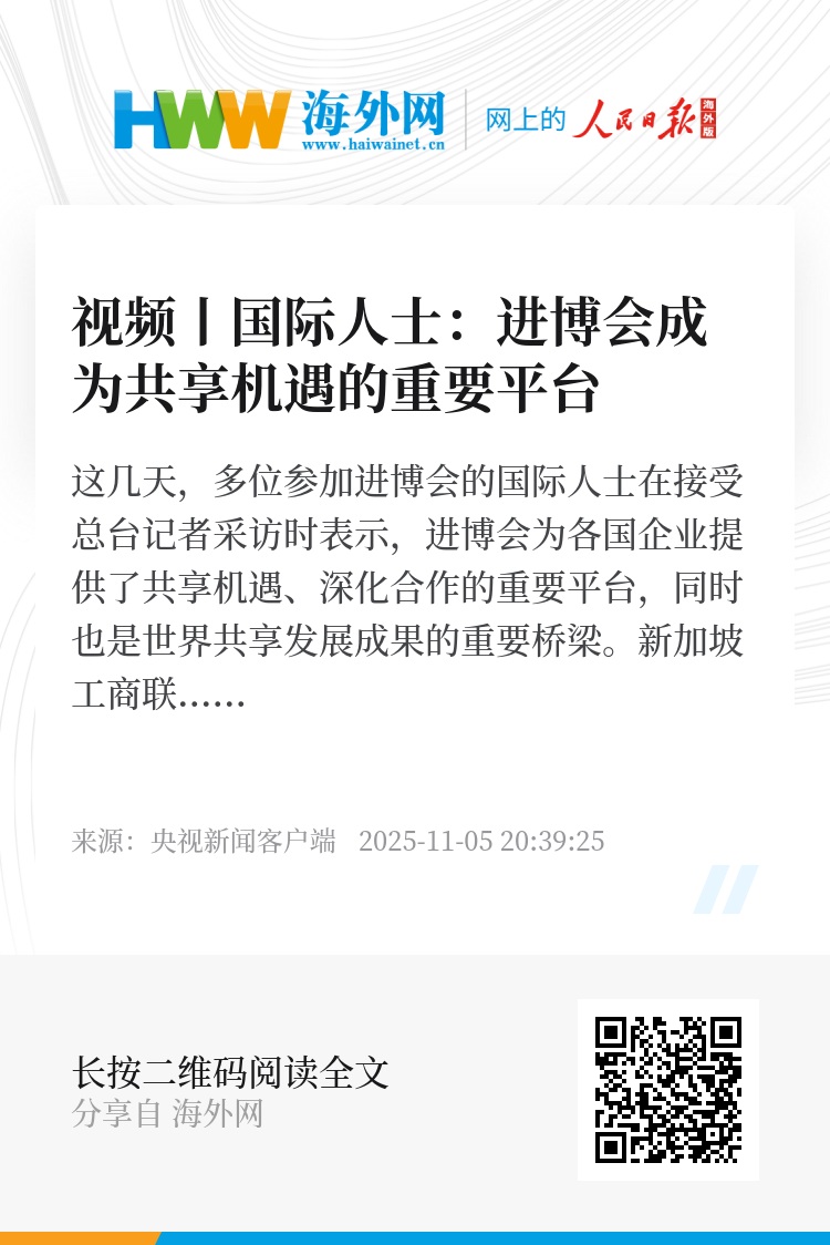 这几天,多位参加进博会的国际人士在接受总台记者采访时表示,进博会为各国企业提供了共享机遇、深化合作的重要平台,同时也是世界共享发展成果的重要桥梁。