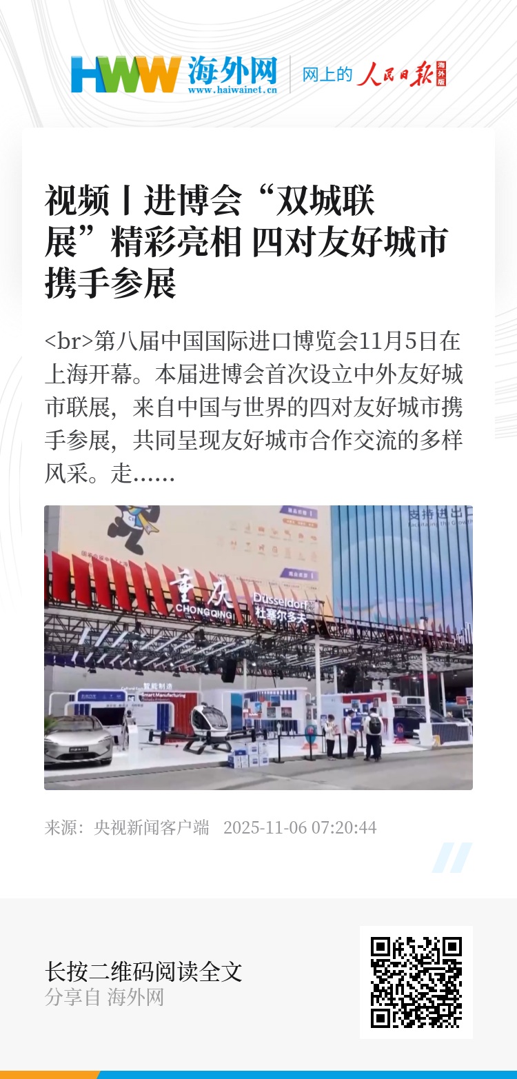 第八届中国国际进口博览会11月5日在上海开幕。本届进博会首次设立中外友好城市联展,来自中国与世界的四对友好城市携手参展,共同呈现友好城市合作交流的多样风采。