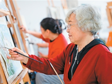 近日,江苏省海安市文化艺术中心市民艺术大学西画班上,老年学员正在专心画画。多年来,该市通过开设多种类艺术公益课程,丰富老年人文化生活,让他们老有所学、陶冶情操。顾彬斌摄(人民视觉)