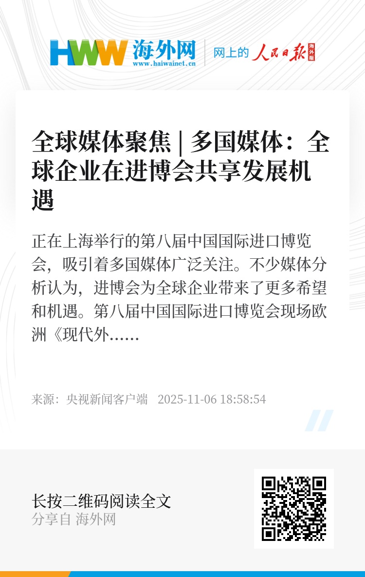 欧洲《现代外交》网站报道称,进博会是中国展示其全球经济地位的重要平台。中国政府正积极传递一个明确信号:中国将持续扩大对外开放,并致力于采购更多优质外国商品。此外,尽管存在贸易摩擦,美国企业仍连续第七年成为进博会展商数量最多的外方代表,这显示出美国企业对中国的商业热情持续不减。