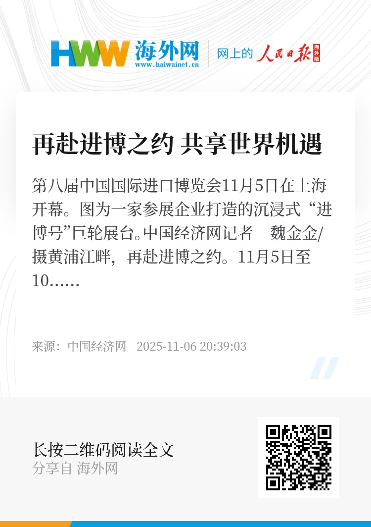 潮涌黄浦江,世界再瞩目。进博会是全球贸易的盛会,是打开中国机遇之门的平台,也是见证中国坚定扩大高水平开放的窗口。放眼长远、久久为功,更多“展品变商品”“展商变投资商”的生动“进博故事”将不断涌现。(中国经济网专栏作者 毛同辉)