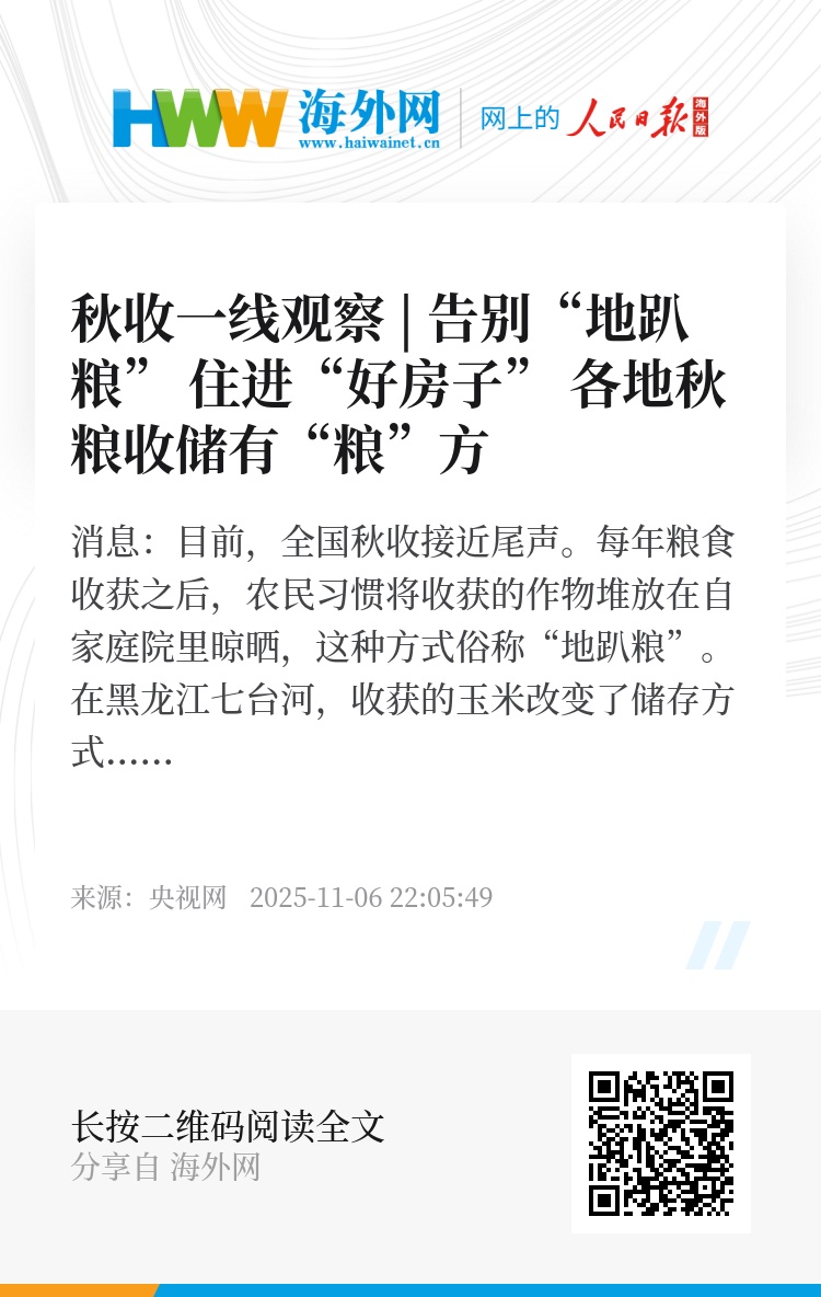 在黑龙江七台河市城山村,一座崭新的粮食自然风干仓正迎来新一季的“住户”。这批刚从田里收获的玉米还带着泥土的湿润与温度,正被陆续转运入仓。