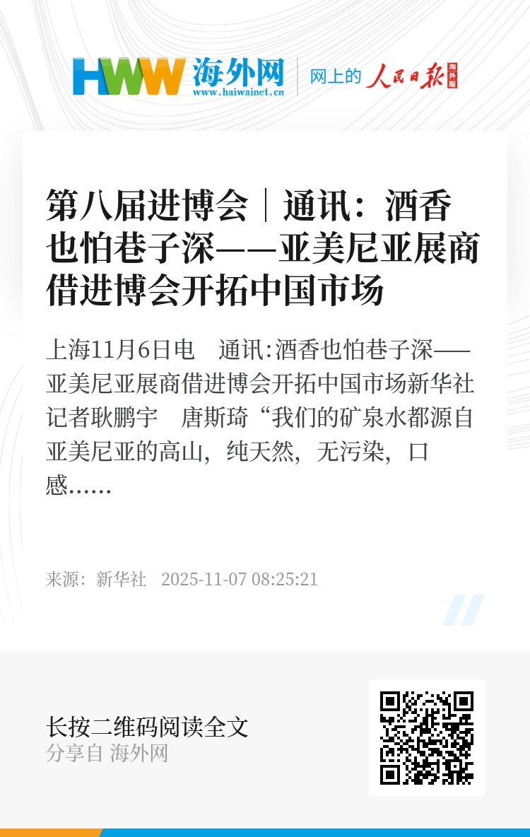 新华社上海11月6日电 通讯:酒香也怕巷子深——亚美尼亚展商借进博会开拓中国市场