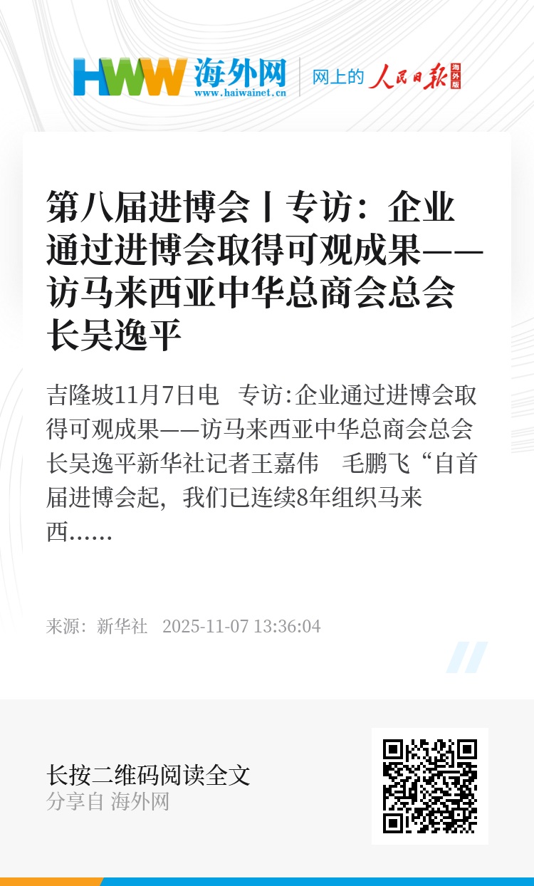 新华社吉隆坡11月7日电 专访:企业通过进博会取得可观成果——访马来西亚中华总商会总会长吴逸平