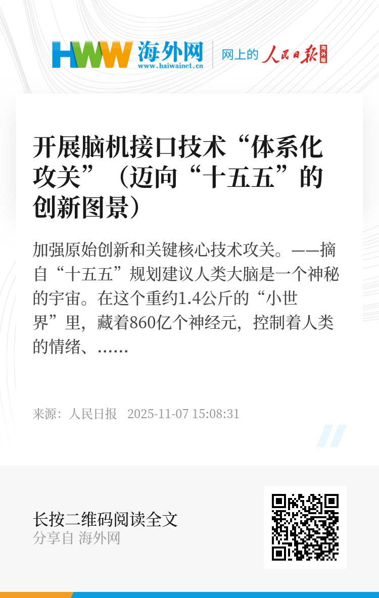 “十四五”时期,我们将目光投向脑疾病领域,通过脑机接口技术,实现了“诊断—监测—治疗—预测”一体的大脑实时“观景”。