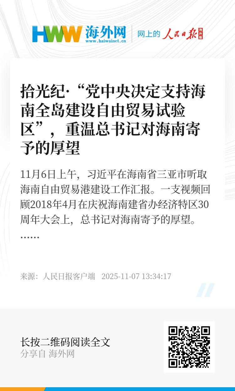 11月6日上午,习近平在海南省三亚市听取海南自由贸易港建设工作汇报。一支视频回顾2018年4月在庆祝海南建省办经济特区30周年大会上,总书记对海南寄予的厚望。