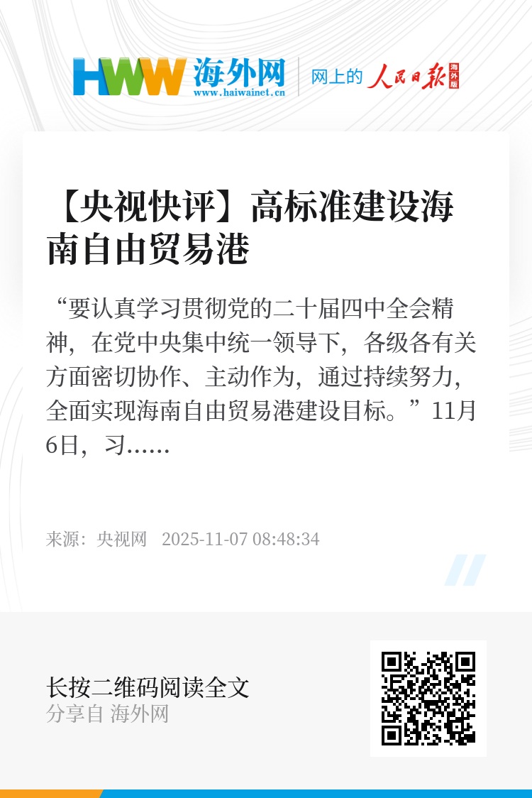 党的二十届四中全会审议通过的“十五五”规划建议明确提出,要“积极扩大自主开放”“高标准建设海南自由贸易港”。在当前环境面临深刻复杂变化的形势下,高标准建设海南自由贸易港是推动高质量发展、构建新发展格局的迫切需要,是加快构建高水平社会主义市场经济体制的时代要求,是推动普惠包容的经济全球化、构建人类命运共同体的实际行动。