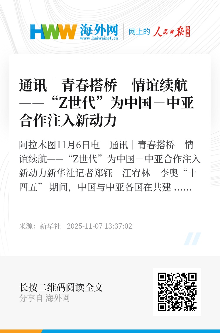 新华社阿拉木图11月6日电 通讯|青春搭桥 情谊续航——“Z世代”为中国-中亚合作注入新动力