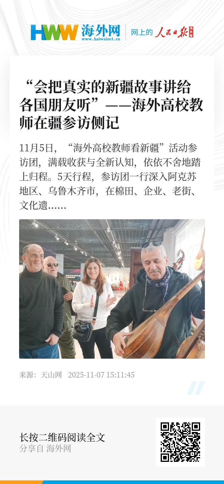 5天参访时间虽短,却让海外高校教师对新疆有了全新认知。临别前,大家纷纷表示,一定会把真实、美丽、多元的新疆故事讲给各国朋友听,期待未来再次到访这片充满魅力的土地。