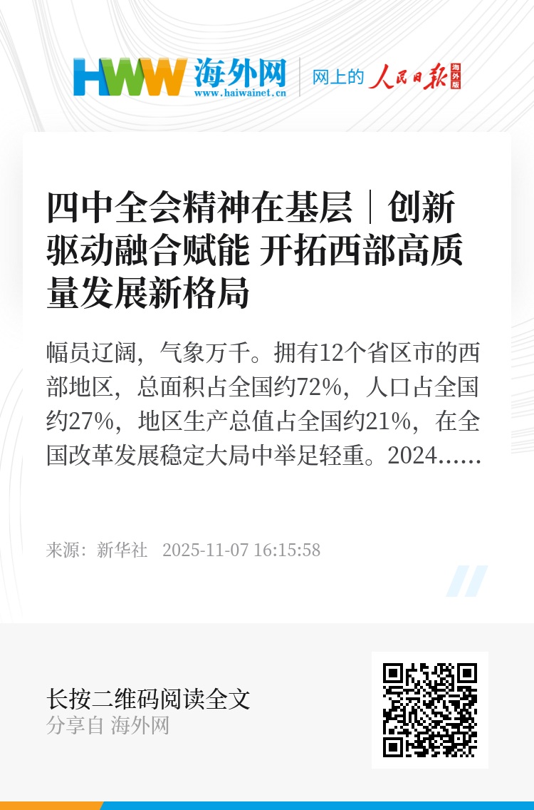 以科技创新驱动产业升级,以文旅融合释放发展动能,以切实惠民凝聚共富合力,西部各地深入贯彻落实四中全会精神,奋力开拓西部高质量发展新格局。