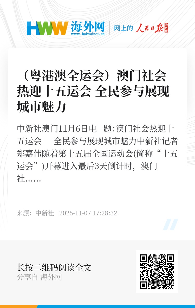 随着第十五届全国运动会(简称“十五运会”)开幕进入最后3天倒计时,澳门社会各界对这场“家门口的体育盛会”期待持续升温。连日来,从官方到民间,从志愿者到普通市民,澳门各界积极投入筹备和欢迎工作,展现这座城市的热情与魅力。