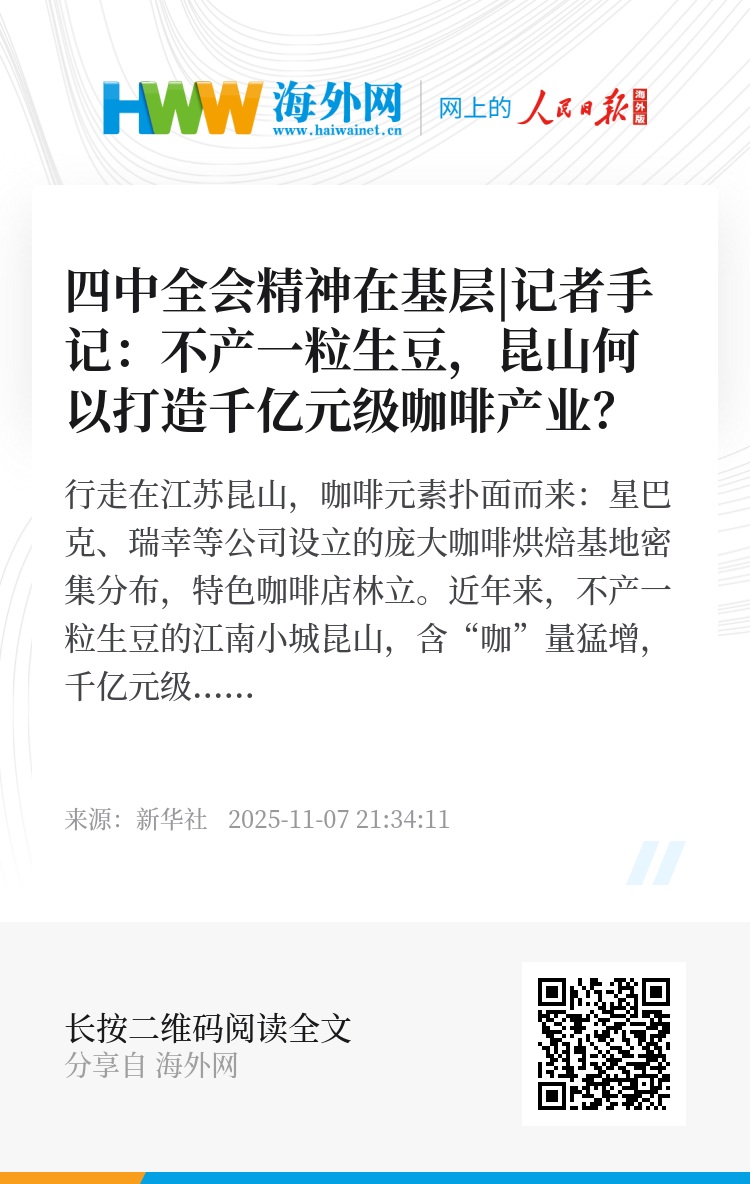 “我们正推动‘咖啡下乡’,将更多全球好豆引入乡村咖啡馆,打造咖啡主题特色村落,依托‘村咖’升级打造‘咖村’。”昆山市招商服务中心副主任李成琛说。(孙小程、任军、杨绍功)