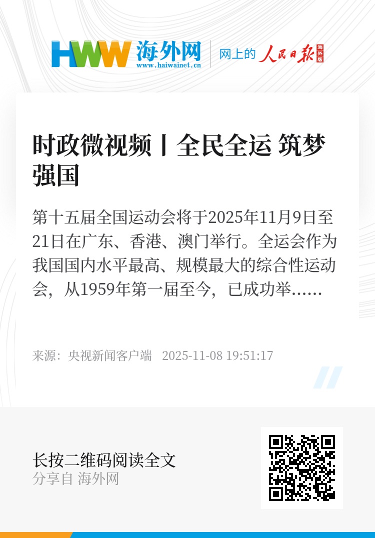 第十五届全国运动会将于2025年11月9日至21日在广东、香港、澳门举行。全运会作为我国国内水平最高、规模最大的综合性运动会,从1959年第一届至今,已成功举办十四届,是新中国体育事业发展的重要标志。