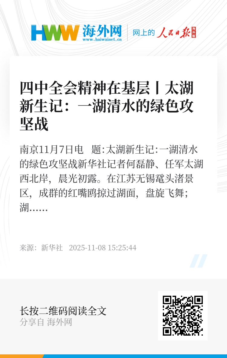 新华社南京11月7日电 题:太湖新生记:一湖清水的绿色攻坚战